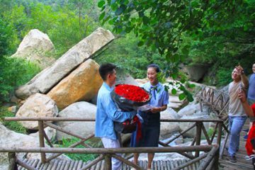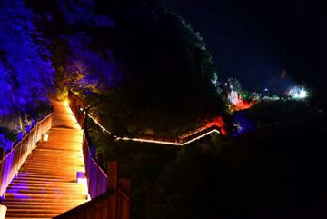 为进一步挖掘景区文化,展现山川魅力,南召五朵山景区将旅游与网红直播相结合,把自然风光玩出了新花样,还促成了一场霸气不失甜蜜的表白。五朵山是中原地区久负盛名的道教文化圣地。景区内云海奇观、怪石林立,山水如诗画,除了欣赏雄奇险峻的山川之外,2017梦幻灯光节也是不可错过的亮点。夏季是游山玩水的好时节,也是表白的浪漫季节,夜景在璀璨灯光的映衬下,情侣可以牵手漫步赏玩拍照,夜游尖叫连连的285米玻璃栈道,登上山顶远眺万家灯火,仰望繁星点点。不论是闪耀的霓虹灯光,还是令人赞叹的奇峰秀水,都让来的人流连忘返。