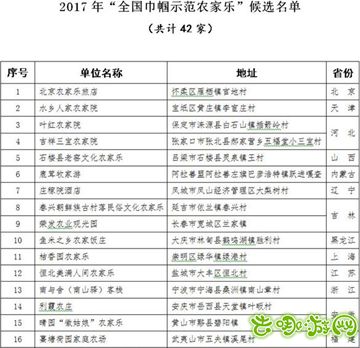 去哪游网讯:为贯彻落实党的十九大精神,引领带动广大农村妇女通过乡村旅游实现就业脱贫增收,按照全国妇联办公厅、国家旅游局办公室《关于开展创建‘全国巾帼示范农家乐’促进乡村旅游发展工作的通知》的要求,在省(区、市)妇联、旅游委(局)推荐的基础上,国家旅游局、全国妇联组织专家评审审核,并经双方领导批准,拟认定北京农家乐旅店等42家单位为“全国巾帼示范农家乐”,现予以公示。公示期自2017年12月18日至12月24日。
