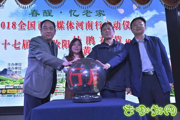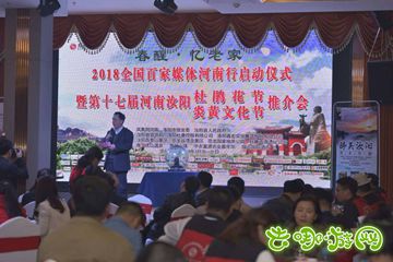 去哪游网讯:由凤凰网河南、洛阳旅发委、汝阳人民政府主办的“春醒·忆老家”2018全国百家媒体河南行启动仪式于今天晚上在汝阳西泰山举行!同时举行第十七届河南汝阳杜鹃花节和炎黄文化节推介会,向来自全国百家网络媒体介绍了汝阳杜鹃花节的活动安排!