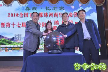 原国家旅游局管理司司长、中国驻新加坡旅游办事处主任、中国优秀旅游城市检查组组长、旅游专家祝庆瑞,洛阳市旅发委副主任孙小峰,汝阳县委常委、宣传部长焦元鹏,凤凰网河南旅游频道总监郭颖颖,共同按下启动球,标志“春醒•忆老家”2018全国百家网络媒体河南踏青赏花季采风活动正式启动。 新华社、中新网、中华网、央视网、凤凰网、大公网、和讯网、中国网、中青网、央广网、国际在线、新华卫视网、中国旅游报、中国日报网、京报网、中国旅游新闻网、中国报道网、中国经济新闻网、环球文化网、中国城市文化网、热点资讯网、视觉中国、新华报业网、世界名人网、企业家日报网、消费日报网、北京报业网、环球资讯网、中国旅游摄影网、乐途网、舜网、北国网、锦绣江苏网、江苏苏讯网、中吴网、中国山东网、烟台水母网、齐鲁晚报网、汉网、深圳民俗摄影网、太原新闻网、山西新闻网、三秦网、中国西部在线、网上西部、黄河新闻网、影像西部网、陕西市政网、大西北网、延安网、前沿时报中文网、中国媒体新闻网、郑州晚报、东方今报、河南旅游手机报、映象网、河南一百度、河南旅游资讯网、搜狐网、新浪河南、网易河南、猛犸新闻、大河票务网、去哪游网、今日头条、河南新闻图片网、信阳日报旅游版、信阳日报社、信阳电视台、信阳新闻网、信阳晚报、河南旅游网、河南旅游文化网、商界财富网等媒体以及知名摄影师和网络大V及花椒直播等共同见证了“春醒•忆老家”2018全国百家网络媒体河南行启动仪式。 “春醒•忆老家”2018全国百家网络媒体河南踏青赏花季采风活动,既是河南旅游界的一次盛会,也是展示河南人正面形象、传播河南正能量的一次集中展现。 “春醒•忆老家”2018全国百家网络媒体河南踏青赏花季采风活动由凤凰网河南、河南省汝阳县人民政府、方城县人民政府、宝丰县人民政府联合主办,汝阳县旅游局、方城县旅游局、宝丰县旅游局、郑州天之源文化传播有限公司共同承办,汝阳恐龙国家地质公园、西泰山景区、杜康造酒遗址公园、雅文虎山温泉、恐龙谷漂流景区、大虎岭天下户外运动基地、中农富源农业嘉年华、七十二潭景区、七峰山生态旅游区、德云山风情植物园、宝丰酒业有限公司联合协办。 在2018年3月25—31日为期一周的时间里,来自全国百家网络媒体的采编记者、旅游专家、摄影师、花椒直播将先后走进汝阳县、方城县、宝丰县,在山林、在田园、在碧水间,伴着连翘、油菜花、牡丹、桃花、樱花、郁金香为全国的游客播报河南的最美春天,叫响“老家河南”踏青赏花的品牌,将游客吸引到河南来,将河南旅游推向全国。 “春醒•忆老家”2018全国百家网络媒体河南踏青赏花季采风活动是凤凰网河南频道整合全国百家网络媒体资源,搭建的一个合作共赢、共同发展的良好平台,通过全国百家网络媒体及旅游大咖、网红走进河南,对河南悠久的历史文化和独特的山水资源进行集中采访报道和新闻的快速传播,使“老家河南”的旅游品牌在全国知名度快速提升;同时通过摄影大家从不同角度所拍摄的美景,以强烈的视觉冲击力引爆宣传亮点,提高河南旅游的品牌美誉度;通过网红互动及直播宣传,迅速增加人气和客流量;最后通过旅游专家对河南旅游与文化如何融合发展提出宝贵的意见和建议,从而推动河南旅游实现跨越发展。 汝阳县委常委、宣传部长焦元鹏诚邀全国百家媒体相聚汝阳,利用两天的时间,感受汝阳的历史韵味,体验汝阳的文化气息,见证汝阳的快速发展。在采访考察期间,希望媒体朋友们对汝阳的经济建设和社会发展积极建言献策,并大力宣传报道汝阳,为汝阳旅游的发展提出宝贵意见,共谋发展,实现双赢。他期待在大家的帮助下,携手共进,尽快把恐龙之乡、酒祖圣地汝阳建成全省乃至全国的文化旅游名县。 推介会结束后,广大媒体朋友纷纷表示,他们非常荣幸能够加入汝阳旅游发展的“朋友圈”,增进与汝阳旅游的交流合作,他们将会用文字和镜头解读汝阳,从不同的视角感受汝阳,记录汝阳旅游的独特魅力和发展新成果,进一步提升汝阳旅游的影响力和知名度。