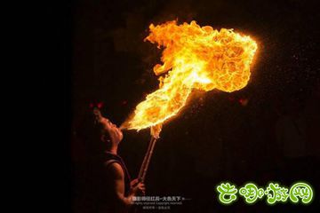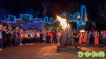 鸿运当头、大吉大利等一道道七十二潭的招牌菜让记者们过足嘴瘾,饭后更有激情的的篝火晚会及喷火表演也是嗨翻了整个广场。