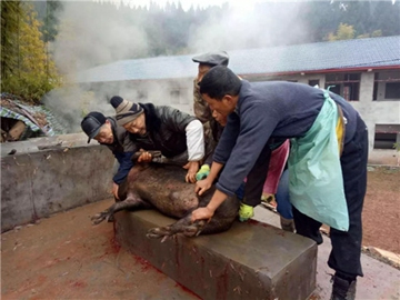 西九华山黑猪肉质鲜美、含有丰厚的铁质、蛋白质和维他命与较低的胆固醇与脂肪含量令世人津津乐道,这些也正是崇尚节食的现代人极缺乏的营养素。黑猪肉包含的“全蛋白质”更能辅佐修补人体组织,常吃黑猪肉能提供平衡安康的营养素,让现代人在节食中仍然可取得矿物质、维他命和蛋白质,长保安康。 真正吸引“吃过猪肉,却没见过猪跑”的游客们的,是充满儿时记忆的“杀年猪”。肥硕的年猪被赶出猪笼,随后,它就成了人们记忆里的舌尖上的味道。