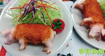 “真猪料理”的原料并不是真正的猪,而是由面粉制成逼真仿制品。小猪崽都是利用面粉做成的,要先把面粉加水揉成面团之后,用小猪的模具按压出来,再拿去锅里油炸就搞定了。