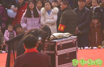 表演现场受到众多观众的华含糊和追捧,甚至不少孩童上前触摸所谓的毒物蟒蛇和鳄鱼。