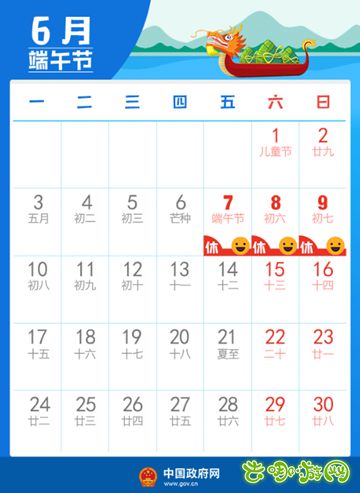 去哪游讯:今年端午节的假期为6月7日至6月9日,共3天。 今年端午节假期恰逢高考,