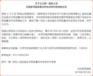 去哪游讯:7月12日,文化和旅游部发布《关于公示第一批拟入选全国乡村旅游重点村名录乡村名单的公告》,对第一批拟入选全国乡村旅游重点村名录乡村名单进行公示。共计31个省市自治区320个村庄入选,河南淮阳从庄、栾川重渡村、新郑泰山村、温县陈家沟村等10个村庄入选全国乡村旅游重点村名录。