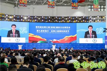 上午10时许,吉尔吉斯斯坦前总理卓奥玛尔特·奥托尔巴耶夫,甘肃省委书记、省人大常委会主任林铎,文化和旅游部部长雒树刚,国家广播电视总局副局长张宏森,国务院扶贫办副主任陈志刚,蒙古国自然环境与旅游部部长纳·策仁巴特,联合国世界旅游组织执行主任祝善忠,世界银行全球文化遗产和可持续旅游协调主任艾哈迈德·艾威达,共同为第四届丝绸之路(敦煌)国际文化博览会和第九届敦煌行·丝绸之路国际旅游节推杆启幕。