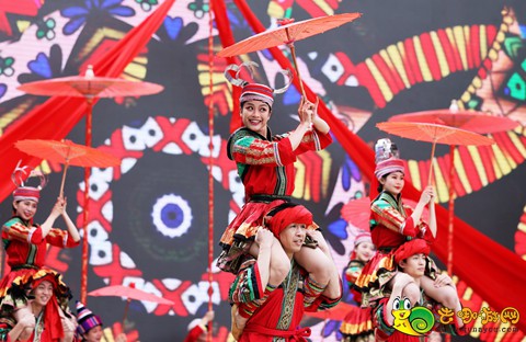 开幕式上,壮族代表诵读祈福颂词,表达风调雨顺、国泰民安、四海升平的祈愿,开启了嘉年华欢庆大幕。紧接着,文艺工作者唱起《山歌唱出艳阳天》《山歌年年唱春光》《流水欢歌迎客来》《三月初三》《赶圩归来啊哩哩》《好日子 歌里过》等富有民族特色的歌曲,现场欢歌飞扬、激情回荡。“伟大的中国共产党,乘风破浪,扬帆远航,领航中国在新时代的征程上......”现场还通过5G连线全区各地各族群众齐声唱响《领航》,大家用慷慨激昂的歌声共同致敬伟大的中国共产党,表达对伟大祖国繁荣昌盛的美好祝愿。 活动现场,非遗传承人纷纷展示丰富多彩的油茶、六堡茶、坭兴陶、剪纸、壮锦、绣球等非遗技艺,表演精彩纷呈的京族独弦琴、彩调、桂剧、壮剧、天琴、侗族琵琶等非遗文化。现场展示的《百米画卷秀广西》,将红色文化元素、民族特色风情、城乡发展风貌等融入其中,充分展现了壮美广西的秀美山川和人文风情。活动现场还开展了特色美食展示、民族服饰及文创产品设计展示、山歌对唱、非遗文创市集、房车营地、民族体育运动、健康文化、法治宣传等特色活动,充分展现新时代中国特色社会主义壮美广西新气象新风采。
