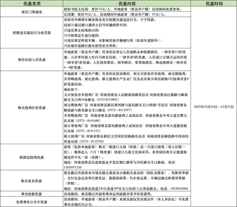 “丰收中原·老家河南”2025运河秋色主题旅游产品宣传推介活动期间优惠政策汇总: