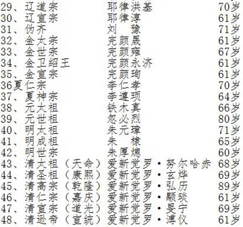 三、中国历代超过60岁以上的帝王人物