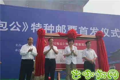 中共开封市委副书记、开封市市长侯红、河南省邮政管理局局长丁平、中共开封市委常委、纪委书记 许兆儒、中国邮政集团总公司河南省分公司副总经理张军正,共同为《包公》特种邮票首发揭幕。